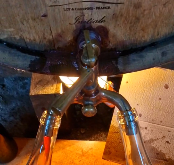 Grâce à un dispositif ingénieux pourvu de deux embouts (souvent appelé « chèvre »), le vin s’écoule en deux courants parallèles, minimisant l’excès de contact avec l’oxygène et réduisant efficacement la formation de dépôts.